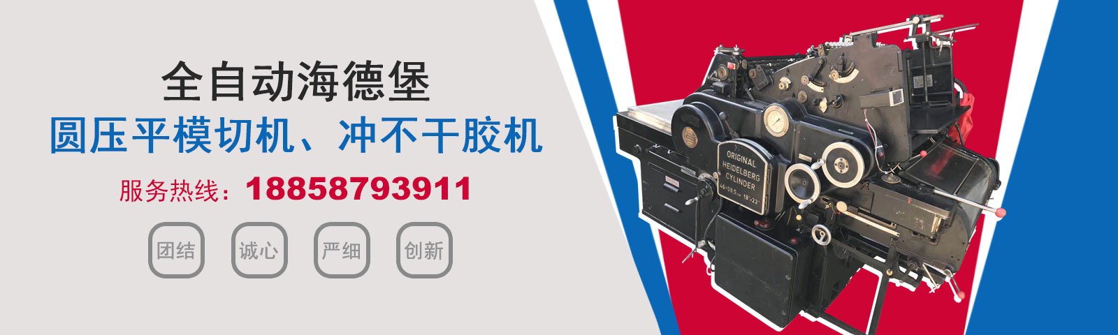 瑞安市恒柯機械廠(www.wzhkjx_com.tthsprg.cn)是國內專業制造銷售全自動模切機,全自動燙金機,圓壓平模切機,圓壓平燙金機,滾筒燙金機,沖不干膠機,海德堡凸印機.銷售的產品系列規格齊全,產品具有速度快,壓力均勻,套印準確等特點。